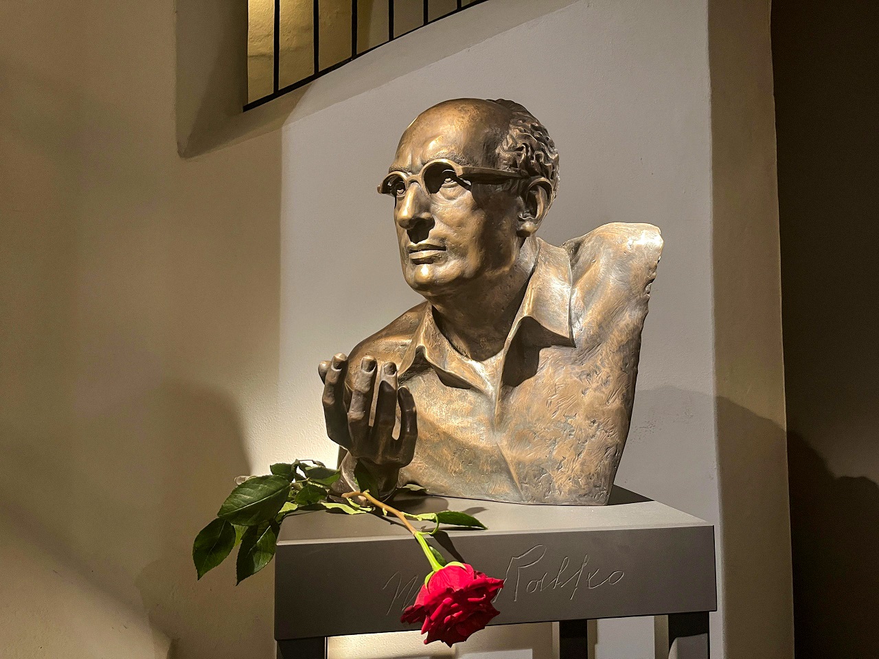 "Es centos ietvert zinātkāri, aktivitāti un enerģiskumu. To, kā Marks Rotko aizstāvēja savas idejas, kuras viņš vēlāk centās parādīt savās gleznās," bronzas krūšutēla atklāšanā teica tēlnieks Ivo Folkmanis. Foto – Didzis Grodzs