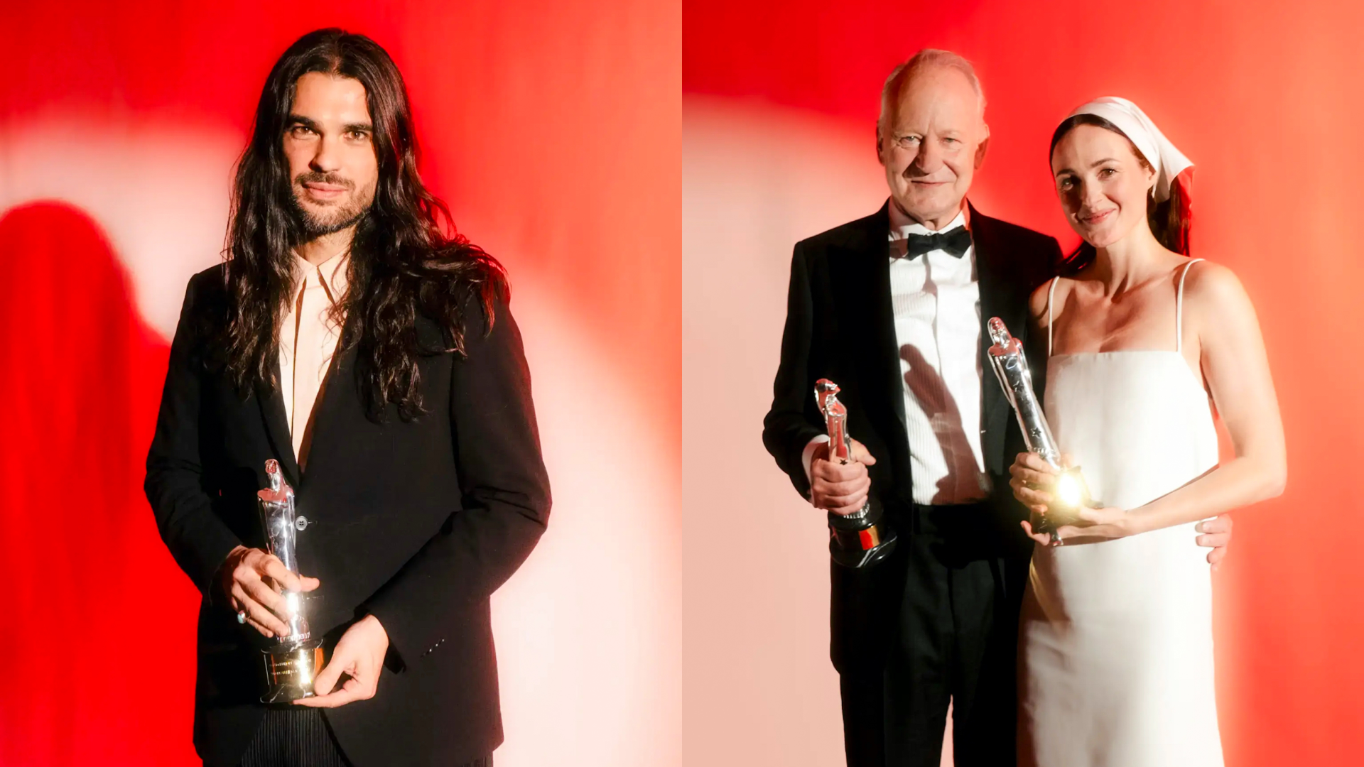 Pa labi - Par gada labākajiem Eiropas aktieriem kronēti Renāte Reinsve un Stellans Skāšgords, kuri ir redzami režisora Jūakima Trīra filmā Sentimentāla vērtība. Foto – Īrisa Vanga
