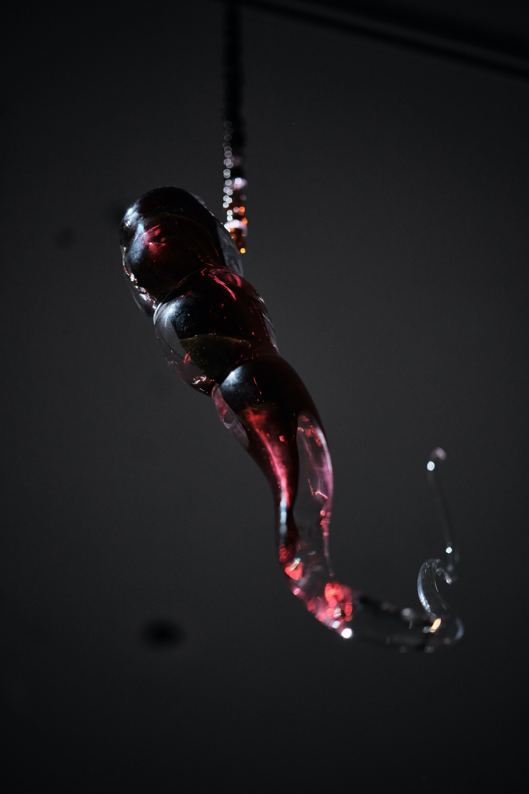 Trīs mākslinieces – Laimdota Malle, Anastasija Šnepe-Šnepe un Rebeka Korna – telpu pārvērtušas mākslas darbā, kas ir burtiski piedzīvojams, jo vairāk pateicoties komponistes Sarmas Gabrēnas radītajai skaņu ainavai. Tomēr izstāde Es iekodos stikla lagūnas ādā ir uztverama vairākos slāņos, ne tikai kā vizuāli iespaidīgs, maņas un iztēli rosinošs telpisks artefakts. Tas gan iespējams, tikai mazliet papūloties un izzinot, kas māksliniecēm prātā un ko viņas pētī. Tā nu man nācās pameklēt vairāk informācijas un sev lasāmā dziļumā (gan jau citi redz citādi) izstādē konstatēt vēl vismaz trīs savstarpēji savienotus slāņus.
