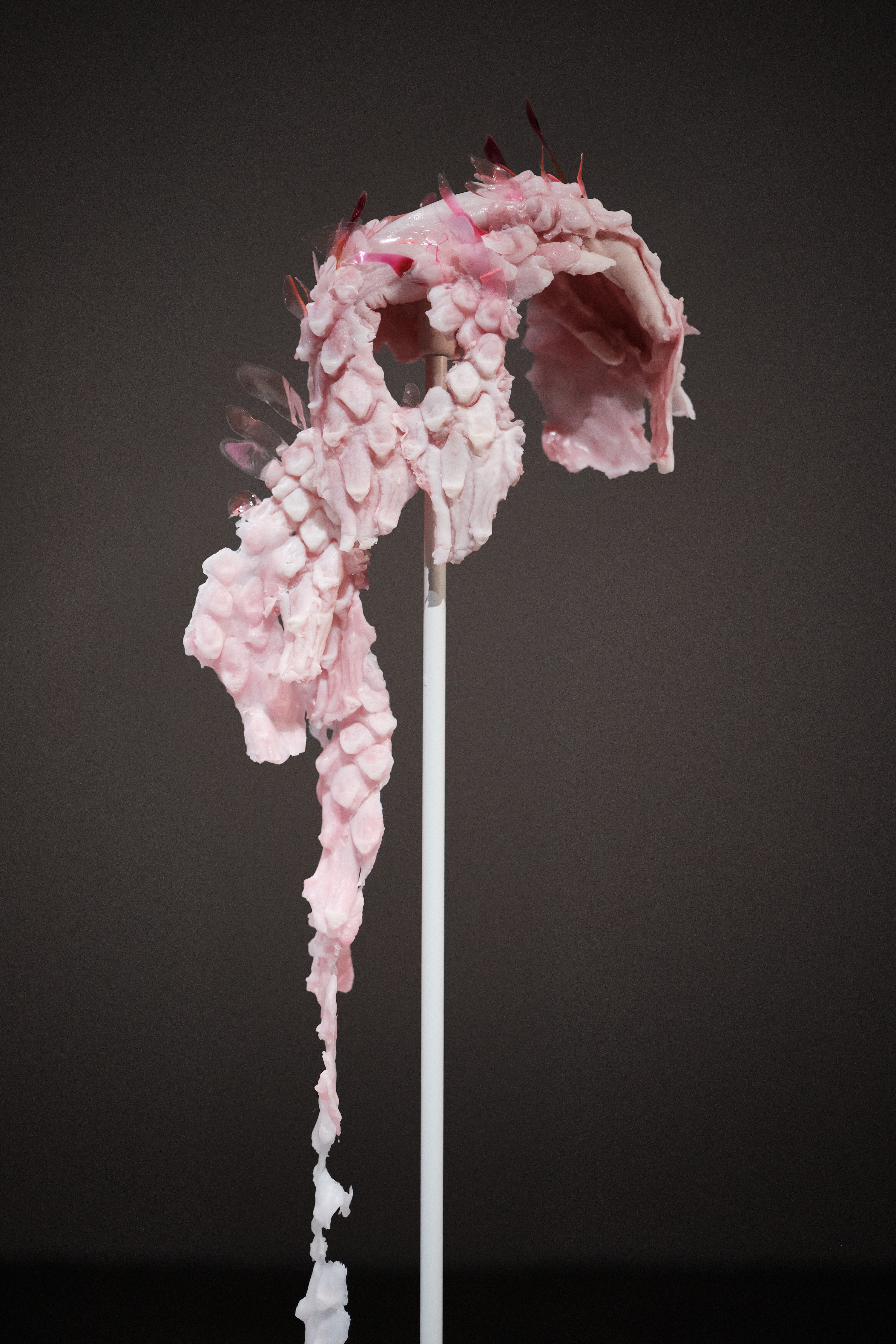 Dodoties tālāk, nokļuvām Rīgas Laikmetīgās mākslas telpas Mazajā zālē, un mūsu acu priekšā pavērās brīnumskaista aina, ko piepilda nekas cits kā nupat tik kritiski apspriestās "ķeskas". Šoreiz tie bija smalki, biomorfi, skulpturāli fragmentāri vaska un stikla veidojumi līdzās rozīgi gaisīgām drapērijām. Jau ar pirmajiem soļiem telpā pārņēma sajūta par ieiešanu svešā valstībā, kurā valda maiguma, smalkuma, iejūtības likumi, vienlaikus bez ierunām respektējot zudību bezgalīgas turpināšanās vārdā. Tāda pazīstama sajūta, kā no laivas lūkojoties zīdainā ezera ūdenī, kā lasot teiksmas par šaušalīgu iemītnieku apdzīvoto ūdens pasauli, ko spējam iztēloties tikai dzidras saules gaismas cauraustu, vai kā skatoties zemūdens kameru video, kur vienas radības šad tad aprij citas, izspļaujot kauliņus, kas noder par mītni citām, kur austeres apvalkā ieviesies parazīts izraisa pērles rašanos, kur koraļļu skeleti palēnām konstruē fantastiskas būves. Bija skaidrs, ka šeit izmantotie fragmenti nav tikai formāla laika gara zīme, bet apdomīgi konstruēta veseluma elementi.
