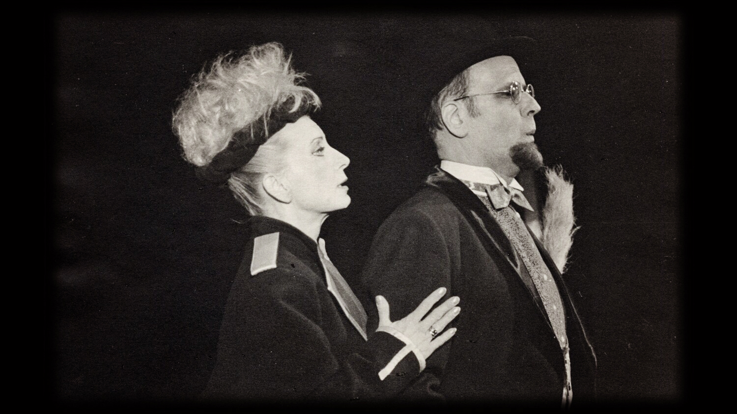 "Kroders mācēja aktieri ievirzīt tā, ka nemanīju, ka es jau raudu vai kliedzu, ne par daudz, ne par maz," saka Aina Karele. Attēlā – Poļinas lomā Oļģerta Krodera iestudējumā Kaija (1987) kopā ar Jāņa Dreiblata Dornu. Foto no Liepājas teātra arhīva