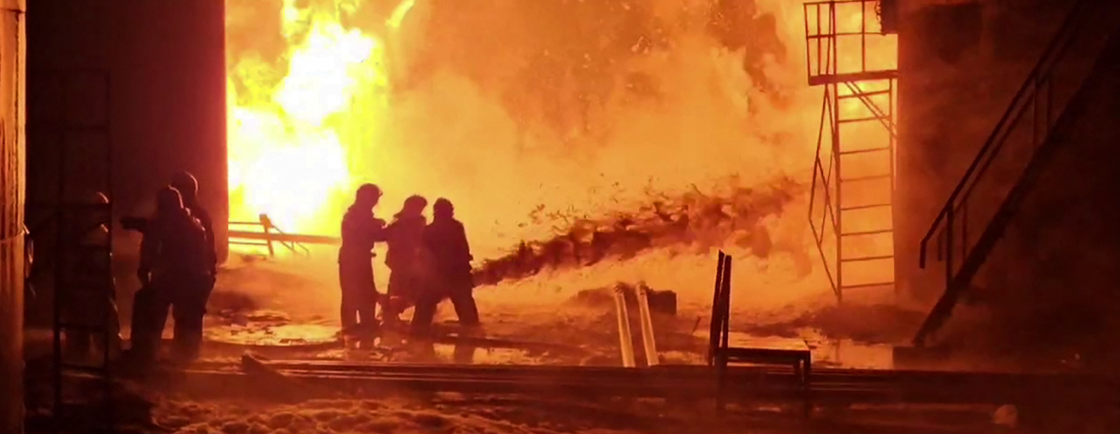Ņižņijnovgorodas apgabala Kstovā pēc dronu trieciena izcēlies ugunsgrēks rūpnieciskajā teritorijā "Lukoil" naftas bāzes un naftas ķīmijas rūpnīcas rajonā.